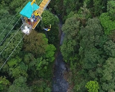 Descubre lo mejor de la naturaleza de San Ramón con una experiencia completa que combina zipline, caminata guiada y observación de aves. Deslízate entre las copas de los árboles en emocionantes cables, recorre senderos naturales rodeados de bosque y conecta con la increíble biodiversidad local mientras observas aves tropicales en su hábitat natural.
