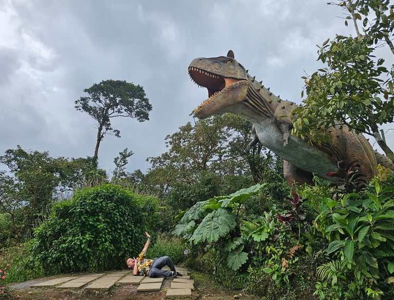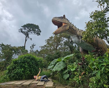 Vive la experiencia que durante el recorrido hasta la catarata, atraviesas el mundo de los dinosaurios con movimientos y sonidos.