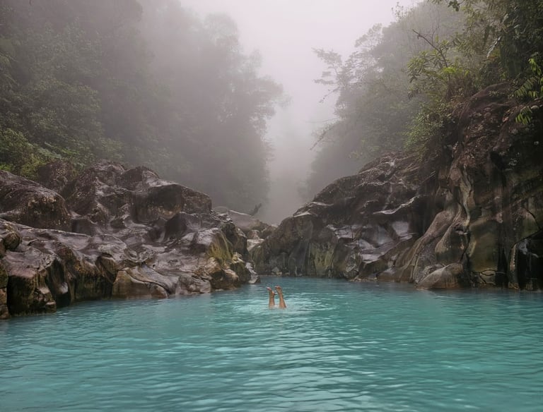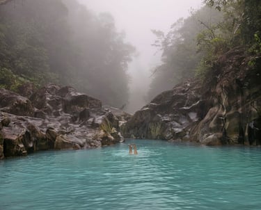Hay un río de agua caliente que nace en las faldas del volcán Arenal, cuenta con minerales como azufre, calcio y magnesio, que ofrecen propiedades terapéuticas para la relajación muscular y analgésicas.