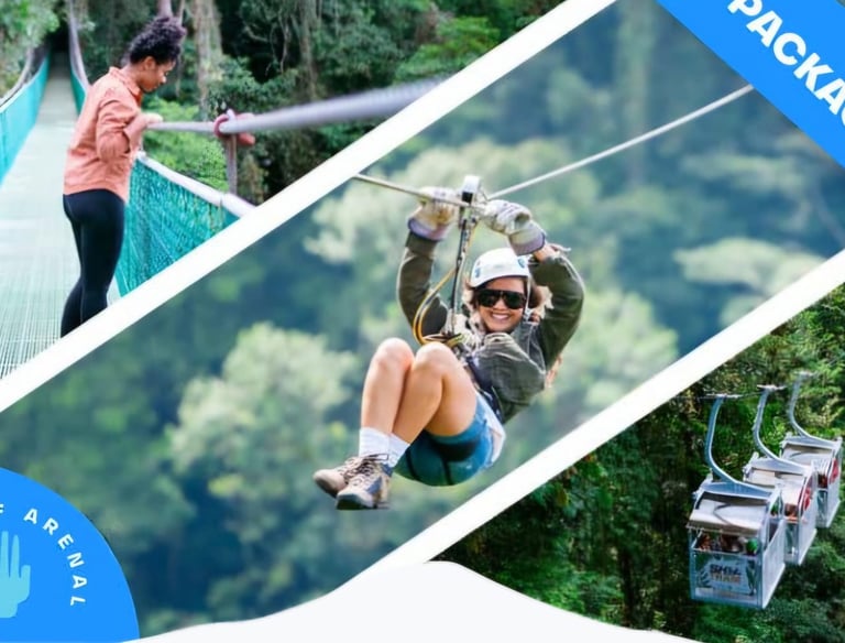 Ofrecen una experiencia inmersiva en la selva tropical, permitiendo caminar entre las copas de los árboles para observar la flora y fauna (aves, monos, reptiles) desde diferentes alturas, con vistas panorámicas del bosque y el volcán, ideal para amantes